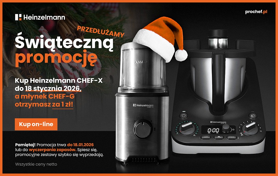 Promocja Świąteczna PRZEDŁUŻONA!Kup Heninzelmann CHEF-X do 18 stycznia 2026, a młynek CHEF-G otrzymasz za 1zł! Link do PROMOCJI!